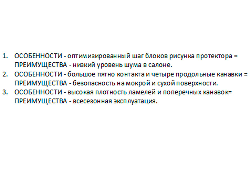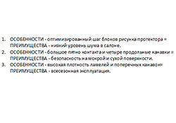 Без лишнего шума — особый шаг блоков рисунка протекторов подавляет вибрации и снижает уровень шума в салоне автомобиля. Высокие акустические характеристики обеспечивают комфорт на любых типах покрытий.